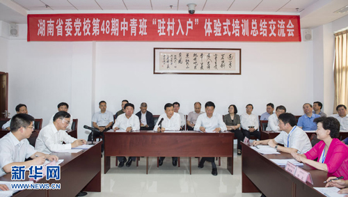 5月8日至11日,中共中央政治局常委、中央书记处书记刘云山在湖南调研。这是5月10日,刘云山在湖南省委党校参加学员“驻村入户察民情”体验交流活动。 新华社记者 王晔 摄